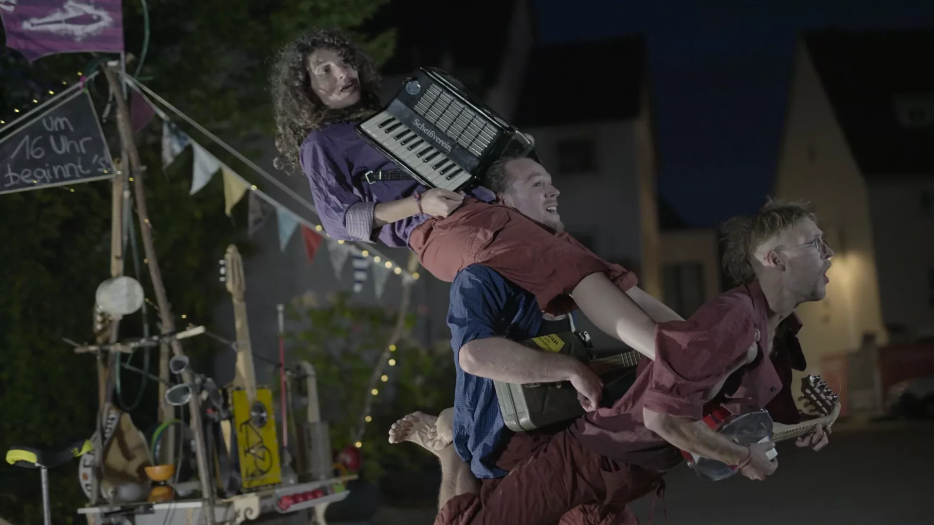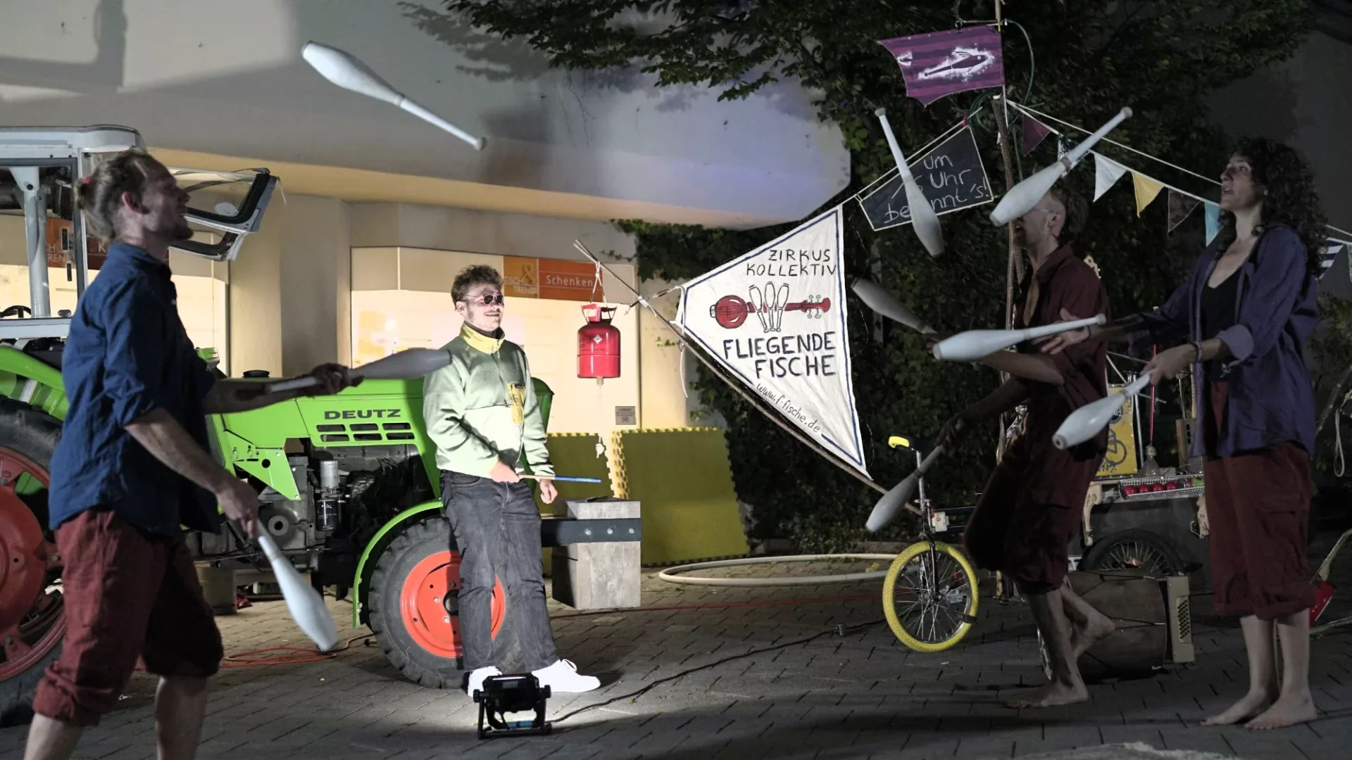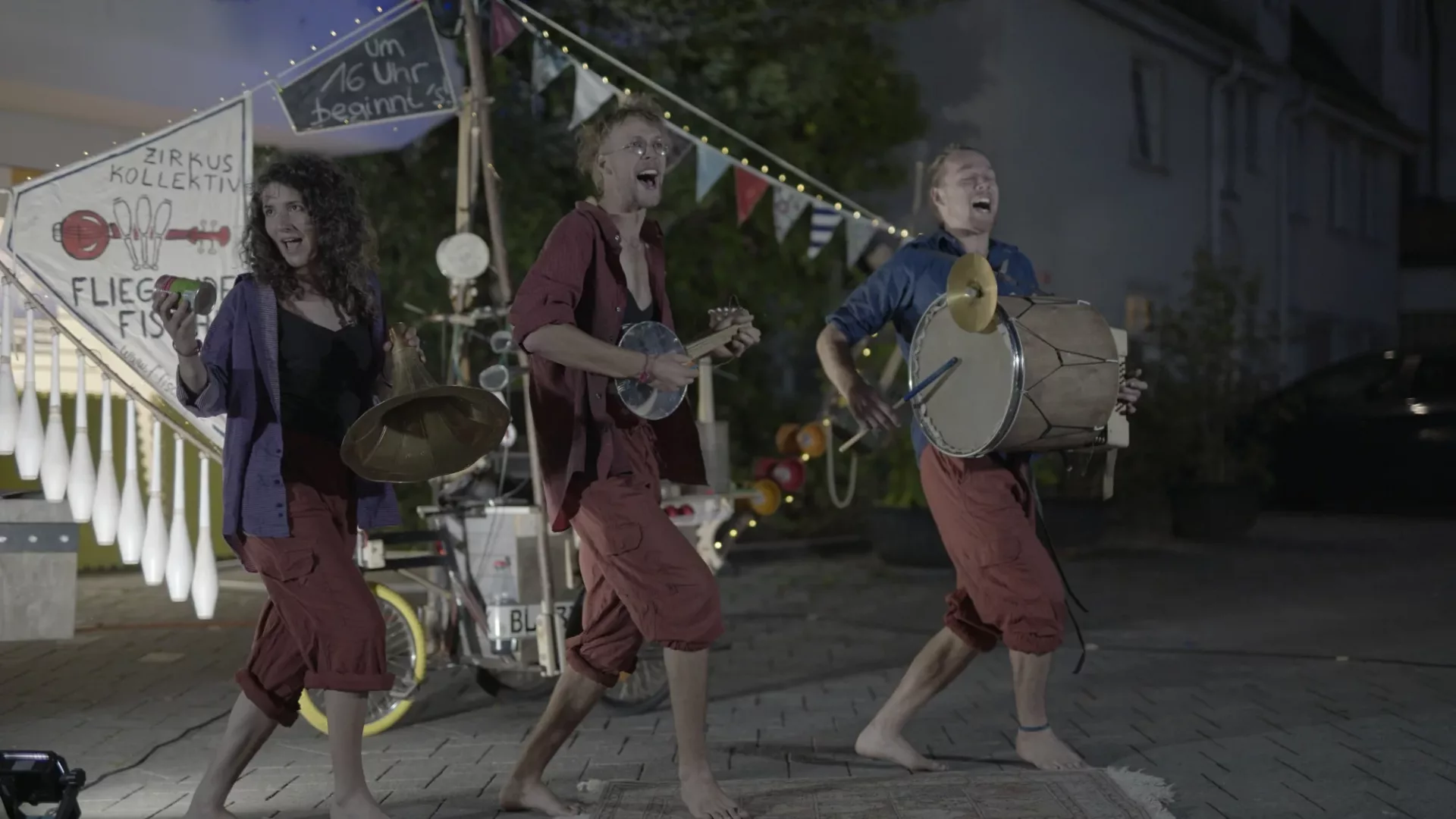 Es wird abenteuerlich, wenn das Trio des Fliegende Fische Zirkus Kollektives mit seinem Straßenschiff vorfährt. Mit einer wilden Mischung aus ausgefuchster Artistik und mitreißender Straßenmusik auf verblüffenden Instrumenten gibt es eine lässig energetische Performance, die bestens unterhält.
