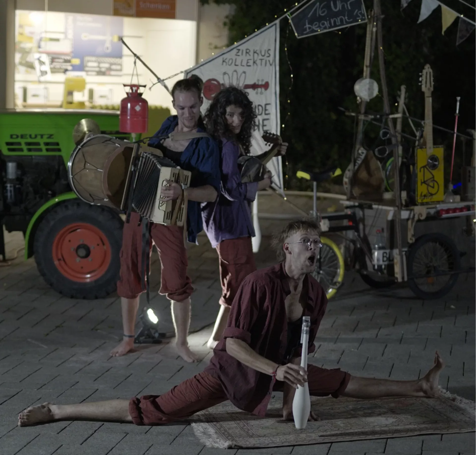 Unsere erste Show, die wir komplett selber mit live Musik begleitet haben. Bei knusprigen Minusgraden, aber mit heißer Stimmung gab es einen bunten Mix aus Akro, Jonglage und Musik.